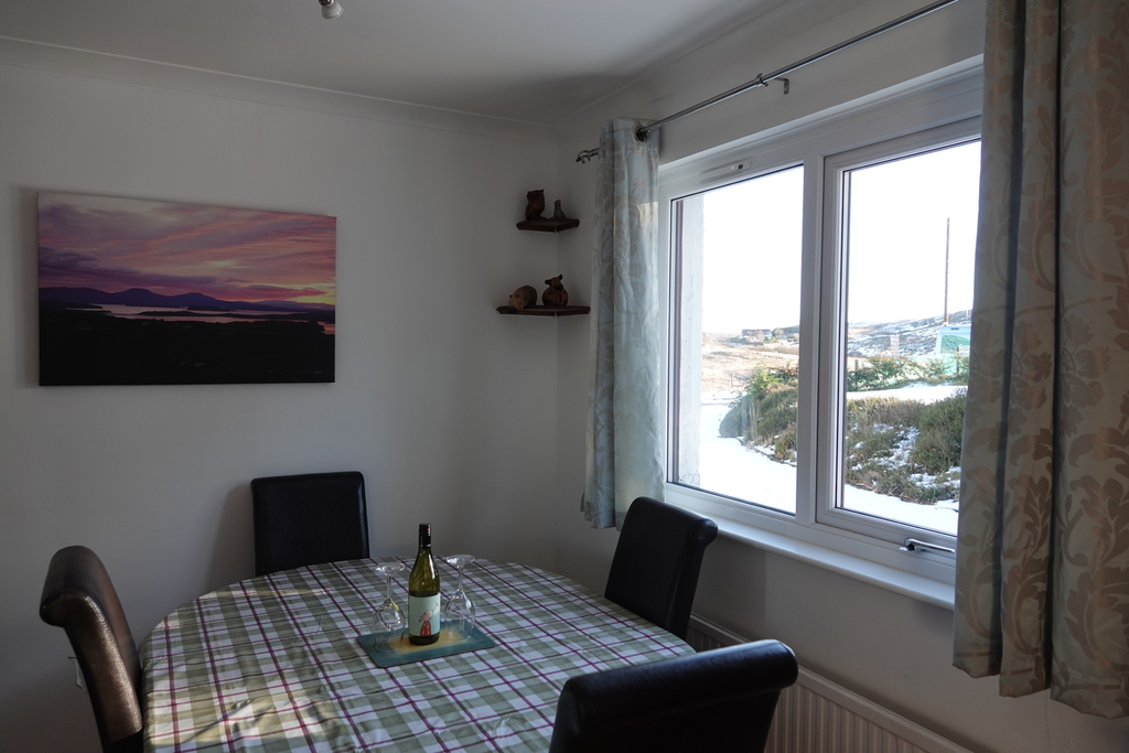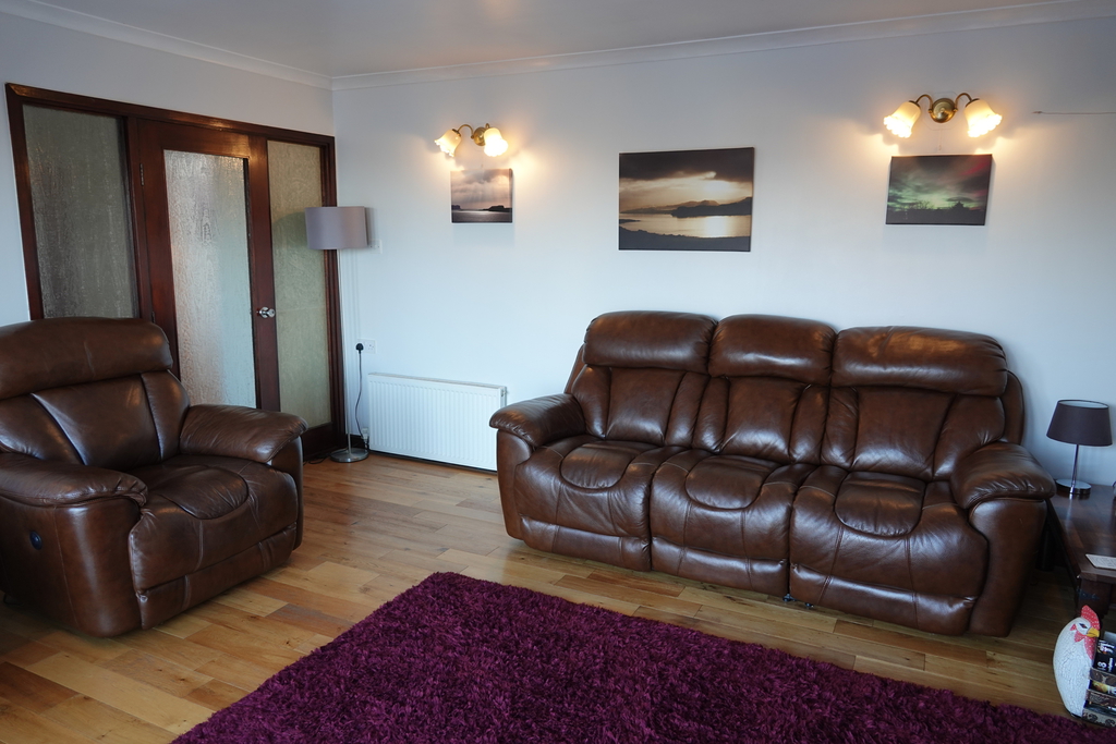 The living room boasts a comfy leather 3 piece suite and lovely wood burning stove, perfect for those chilly Skye winter evenings.