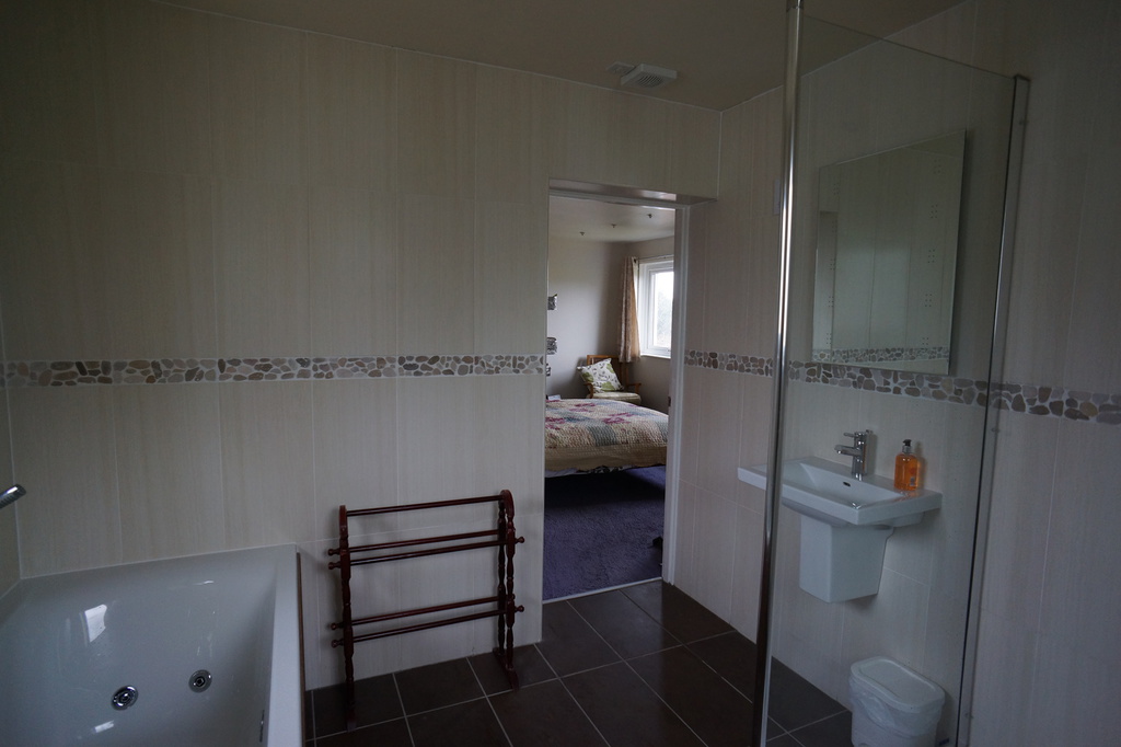 The master bedroom has a king size bed, fitted wardrobe and benefits from its own en-suite, with walk in shower and for that touch of luxury a spa bath. Double windows to the front overlooking