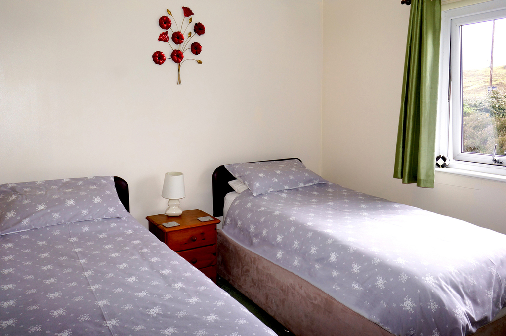 Bedroom 2 is a twin room with fitted wardrobe with views to the Cuillin Mountains.